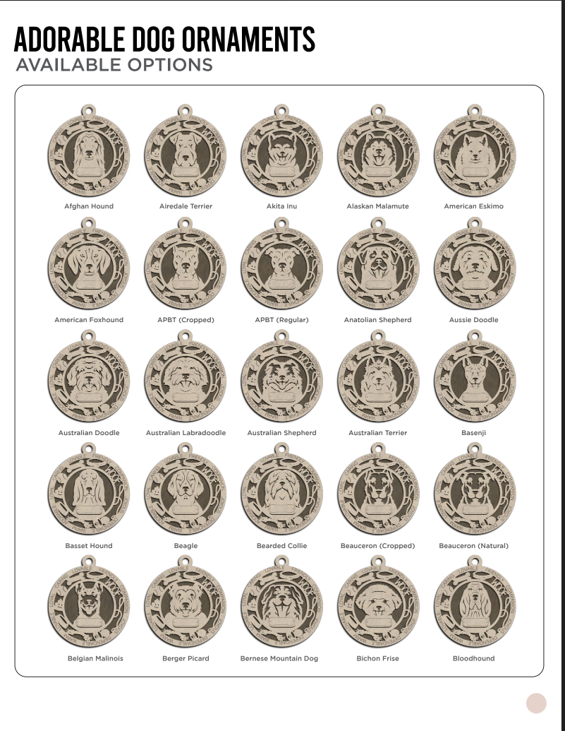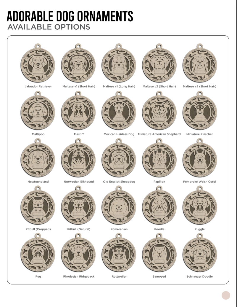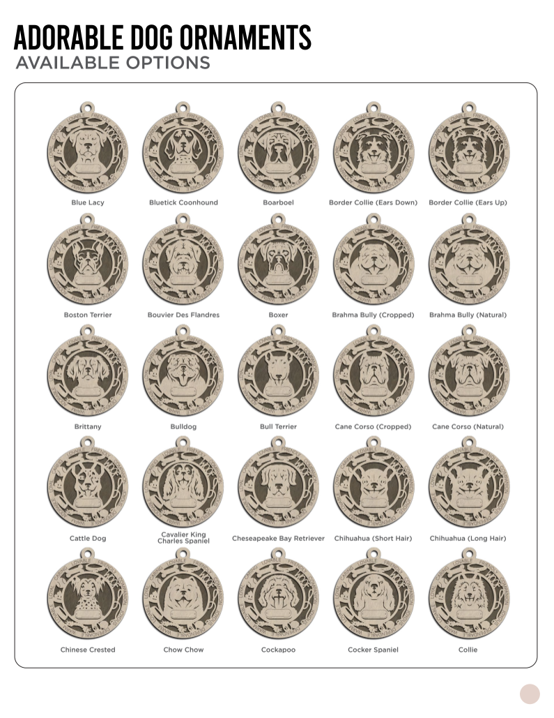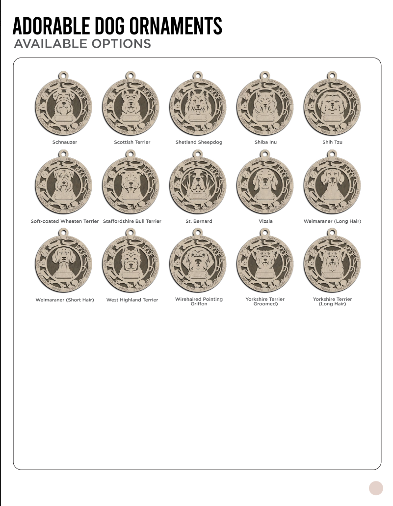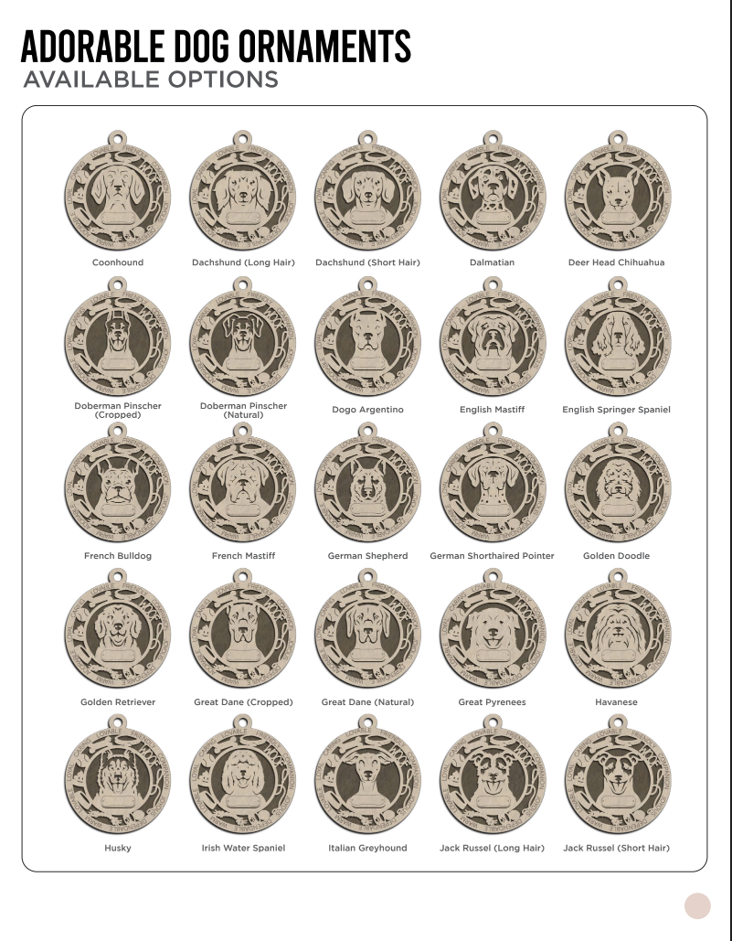 The Adorable Dog Ornaments feature a wide variety of Dog breeds that can be